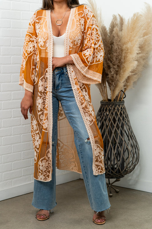 Flash DealNadia Mesh Embroidered Boho Lace Kimono