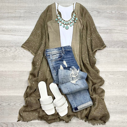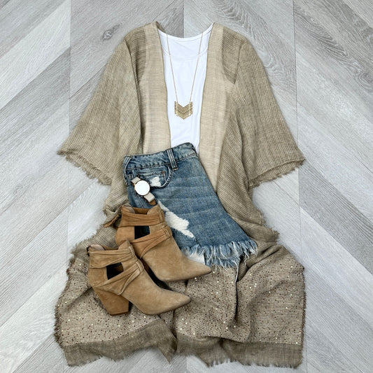 Sequin Frayed Edge Kimono