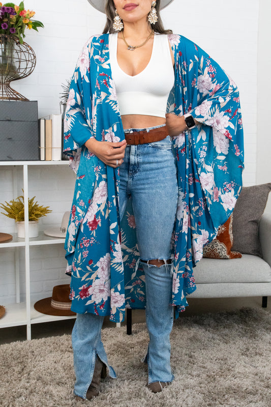 Floral Butterfly Sleeve Kimono