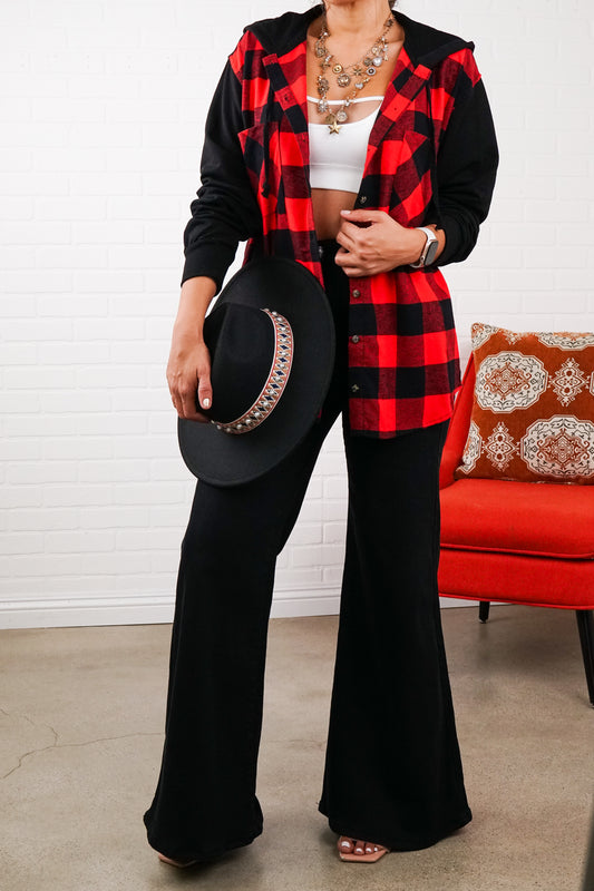 Women's Hooded-Two-Tone-Flannel Fall Essential