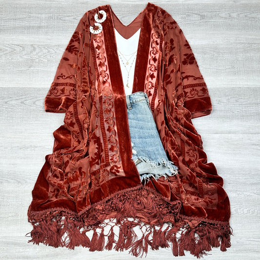Velvet Mesh Boho Kimono