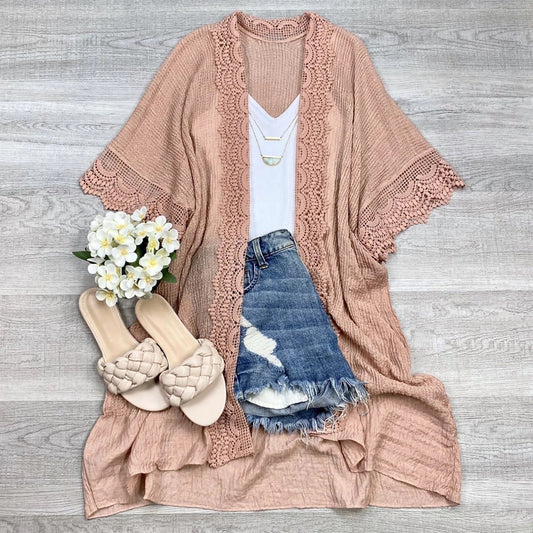 Sold outScallop lace Trim Kimono