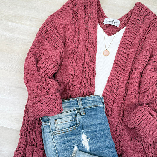 Jasmine Chunky Ribbed Knit Pocket Cardi
