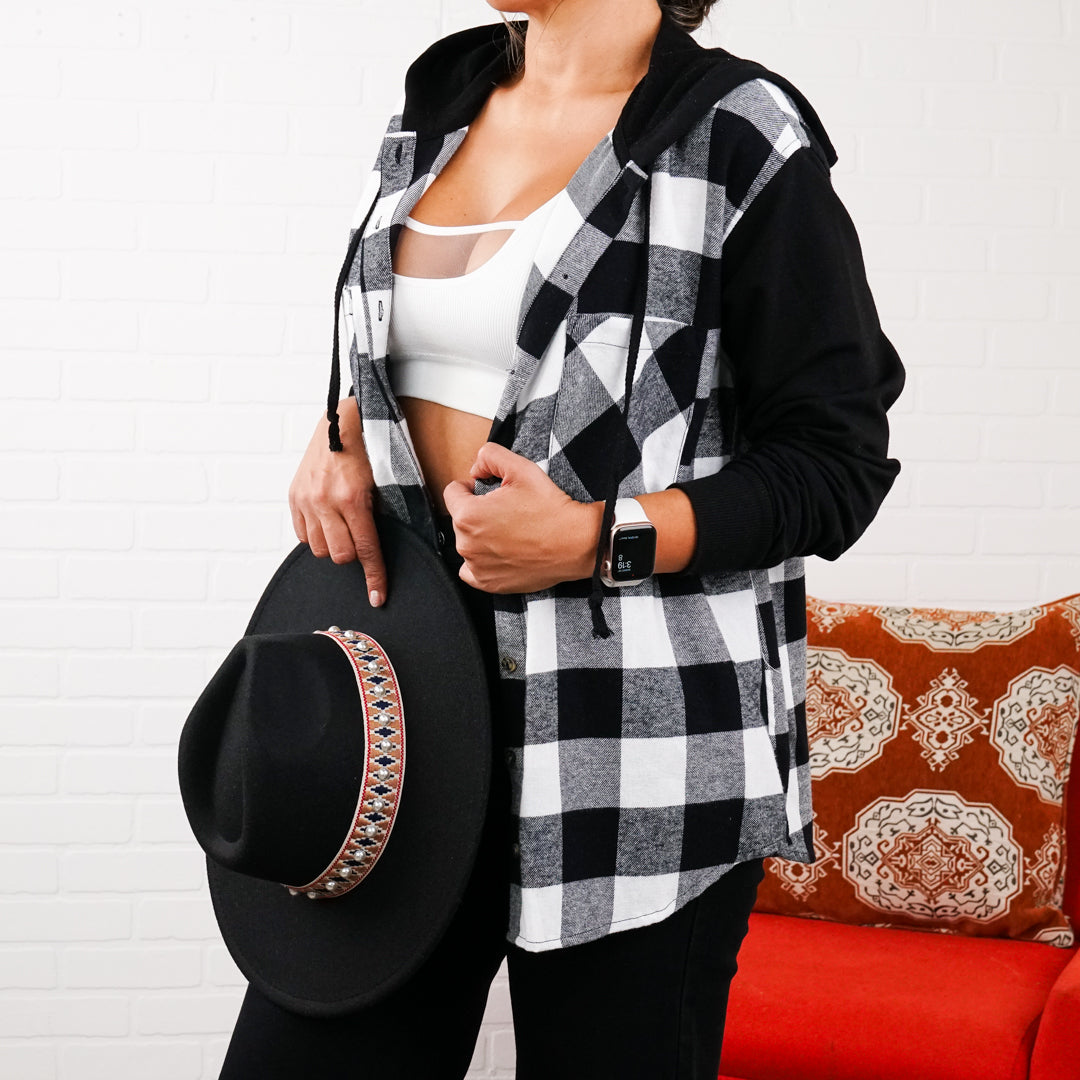 Our Hooded Flannel is everything you want in a fall layer—cozy, oversized, and effortlessly stylish. Brushed fabric, a built-in hood, and a relaxed fit, it pairs perfectly with leggings, jeans, or layered over your favorite tee. Whether you're heading to the pumpkin patch or grabbing coffee on a crisp morning, this hooded flannel you’ll reach for again and again.