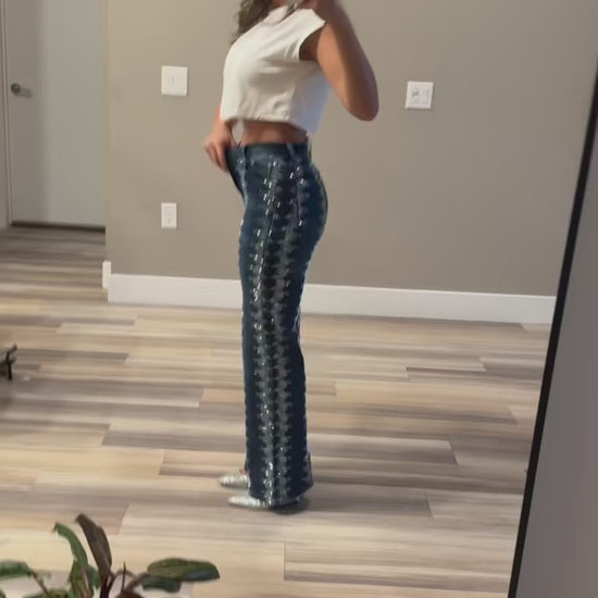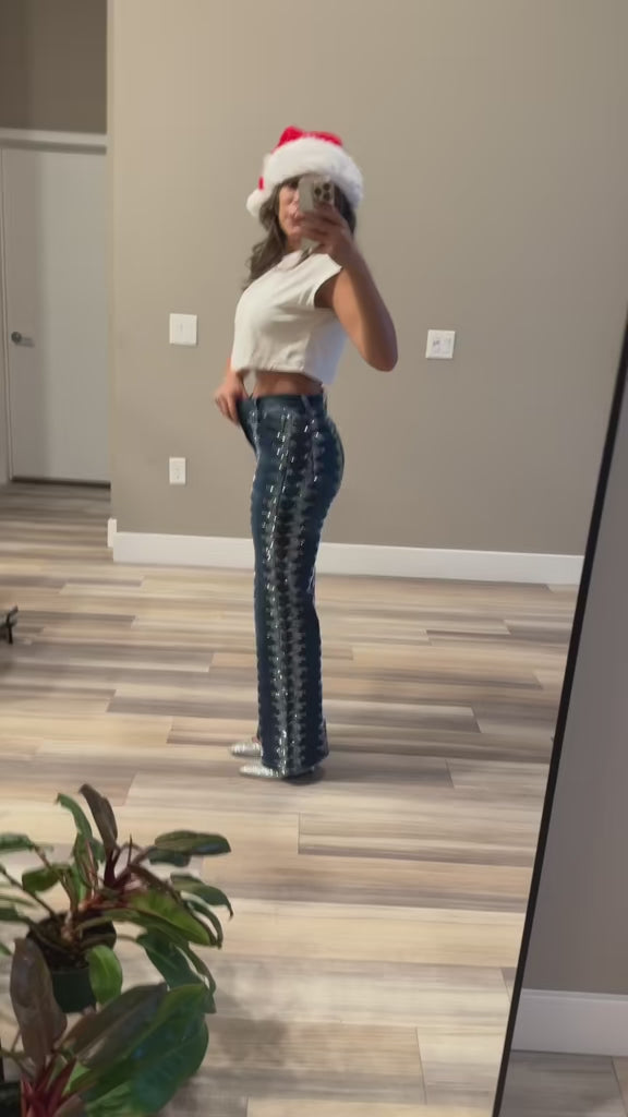 Shelby Rhinestone Straight-Leg Jeans – Sparkly High Waisted Denim, Boho Western Style
